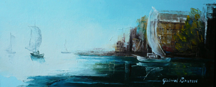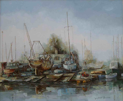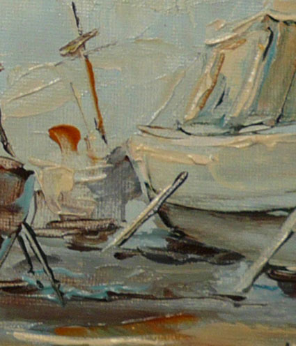 | Un éclair s'impose au premier regard : les marines, les ports de pêche, les canaux, calmes, froids et sublimes, traités en un extraordinaire camaïeu bleus et gris. Tout ceci n'est que chatoiement des reflets, richesse des ciels, touches nettes, profondes et précises, tantôt larges et épaisses, tantôt fines et légères.